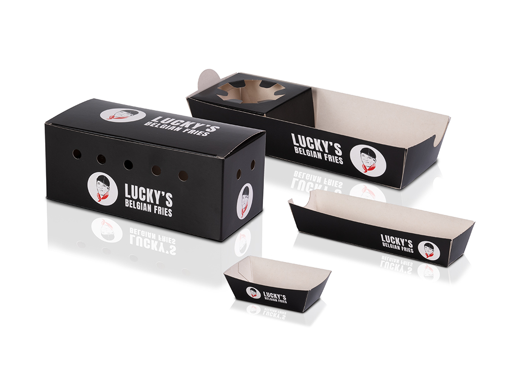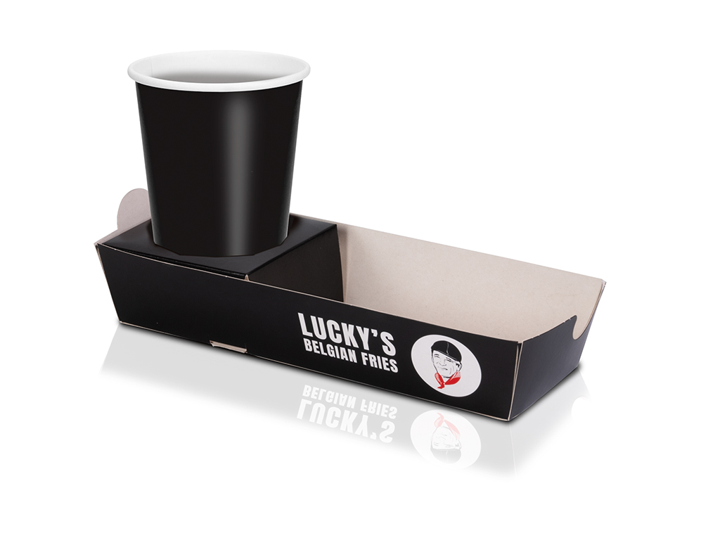 Extensive time and energy were invested in developing custom packaging, designed for enjoying fries and drinks both in-store and on the go. Our containers and cups have been crafted to ensure that every carrier reinforces the Lucky’s Belgian Fries brand, whether inside or outside the shop.